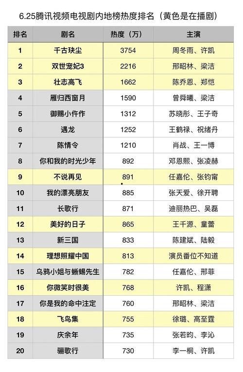 电视剧迷们,是不是又到了你我最期待的时光?没错,今天我要和你聊聊最近的热门话题——腾讯视频国产电视剧排名。让我们一起揭开这个榜单的神秘面纱,看看都有哪些电视剧能在这片江湖中脱颖而出吧!